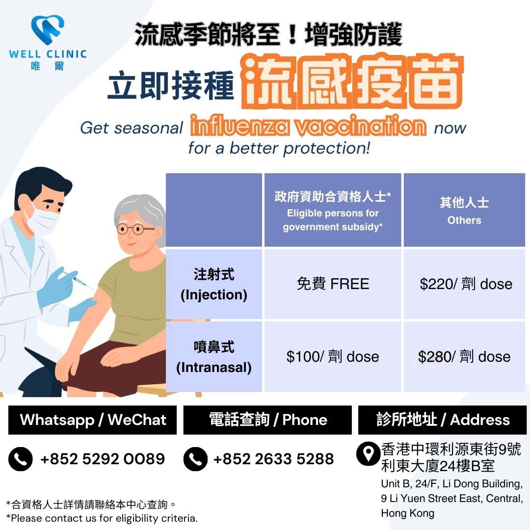 作為其中一間政府認可的服務提供機構,唯爾醫務中心將為合資格香港居民提供免費預防流感疫苗的接種服務,令大眾可以增加對病毒的抵抗力。
